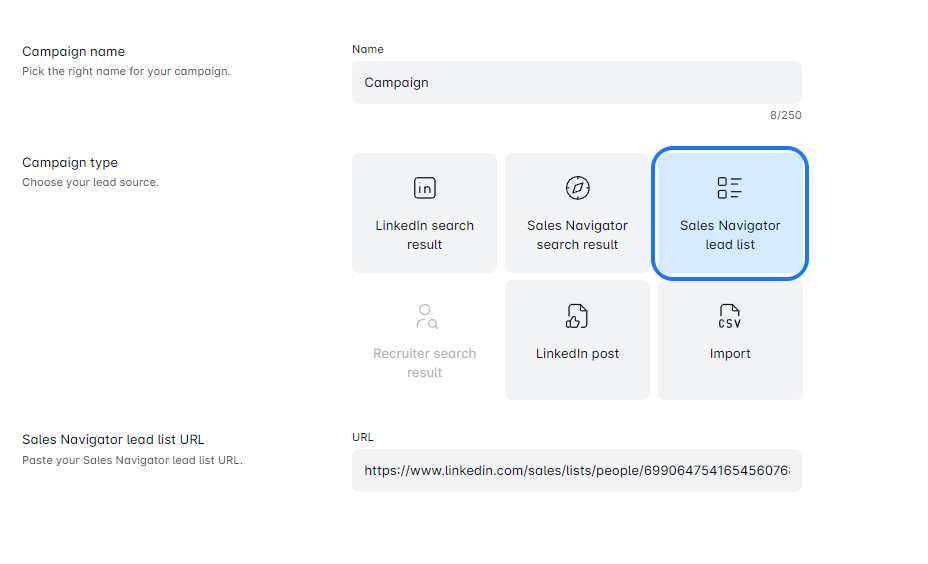 - Leads List campaigns don’t have the degree option, but you can save connections with any degree (1st, 2nd, and 3rd).
