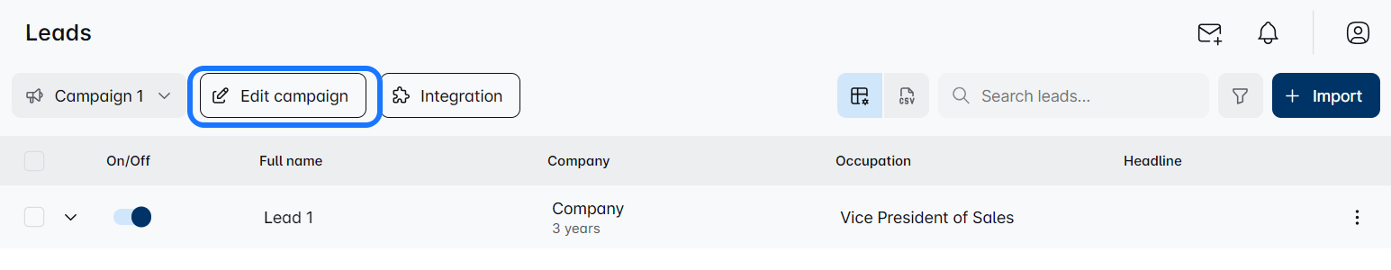 - Find the campaign where you want new leads.