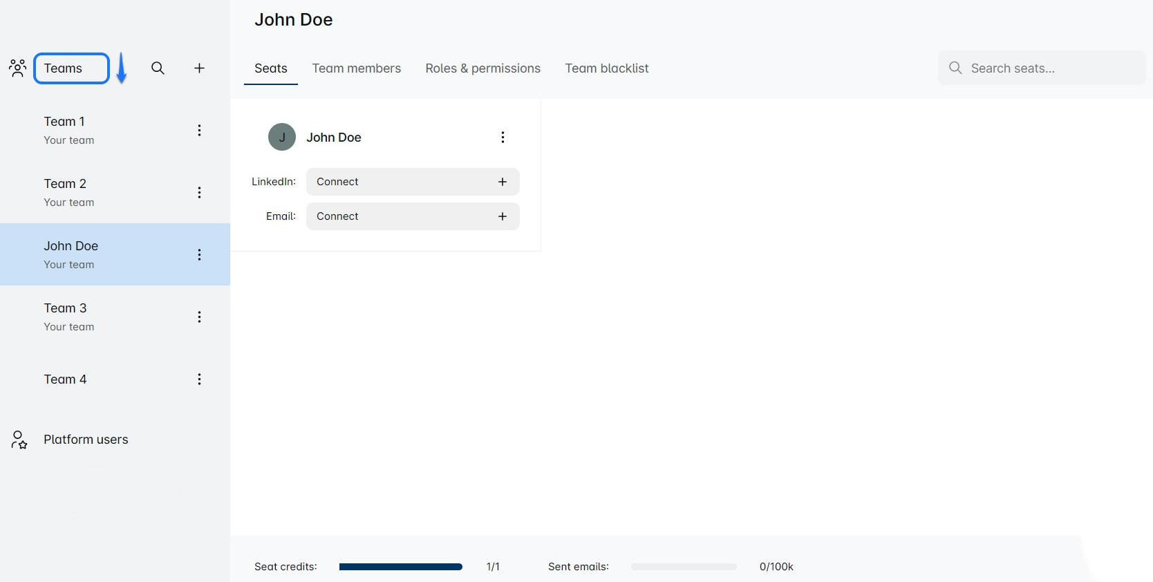 - Transfer seat credits: Wish to add more seats to your team? Here is where you can do that.