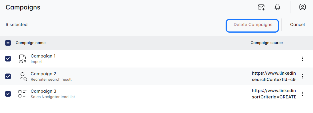 - To delete multiple campaigns at once, select the campaigns you wish to delete and click on the 'Delete campaigns' button.