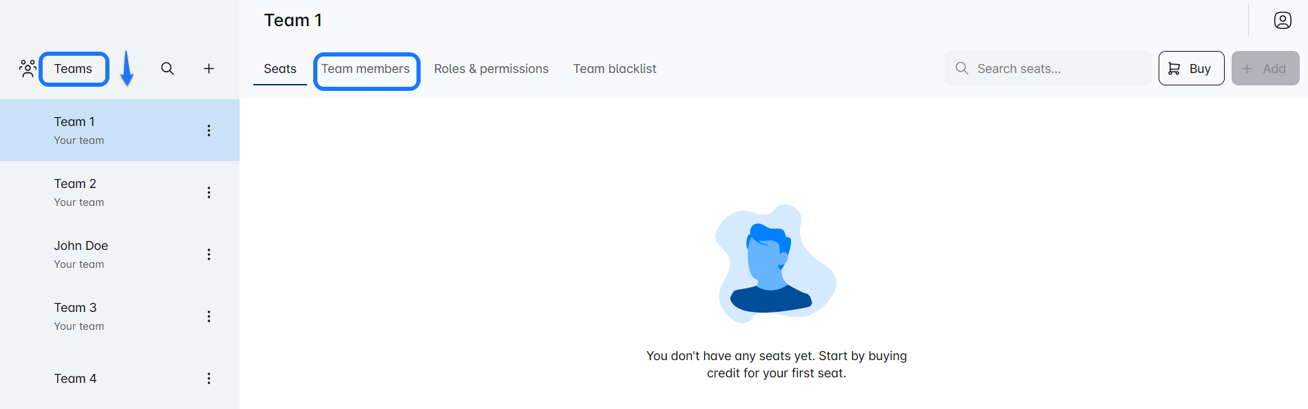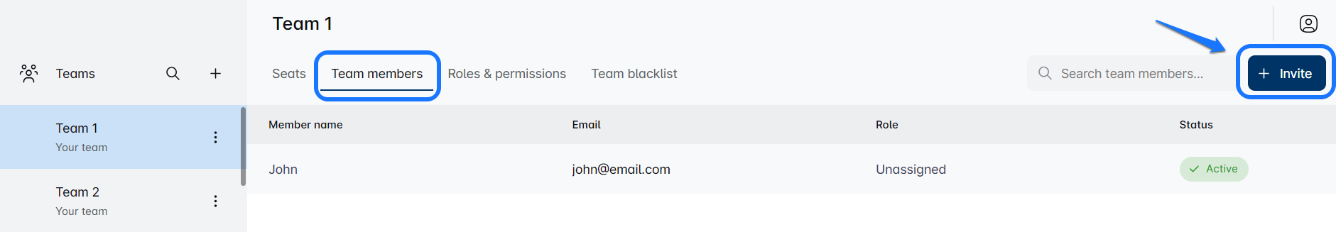 If you’ve got just one team, simply click on the 'Team Members' tab to kick things off.