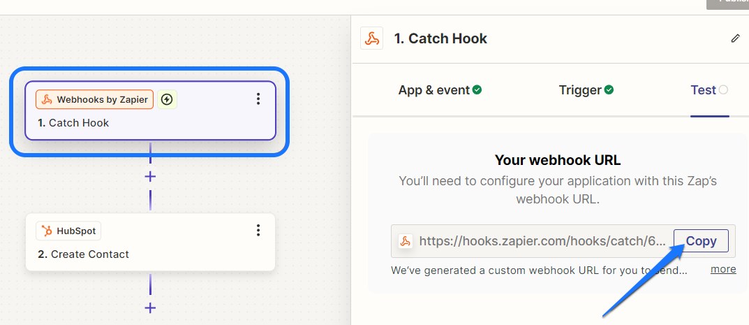 - Zapier will now provide you with a webhook URL.