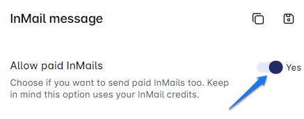 Here's where it gets interesting: MOO Marketing enables you to blend paid and free InMails in your Smart Sequence. Our algorithm makes a difference between Open Profile users and those who can only receive paid InMails. By toggling the "Allow paid InMails" button in the platform, you empower the Smart Sequence to make this decision for you, ensuring a smooth path to your lead through InMail.